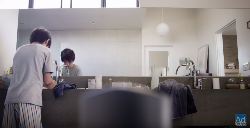 00:05 – The camera zooms in on the child, giving a clear image of him in the mirror as a young Asian boy. Perhaps this will hold significance if he appears later in the advert? He also appears to be drowsy, as if he had just woken up and is about to take on the day