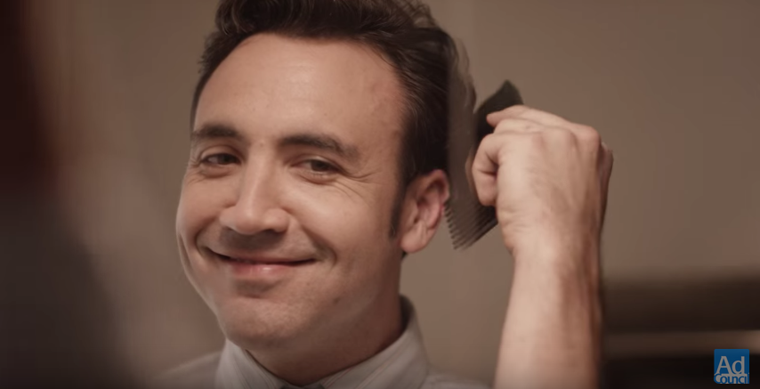 00:18 – Aside from this being one of the creepiest smirks in existence, this shot also reveals where the comb was headed. A white man, different from anyone previously shown, is using it to comb his hair. He is wearing a dress shirt as is determined by his collar. He is presumably using the comb to get ready for a day or work or meeting of some sort. It is entirely possible that he is a member of the family in the beginning of the advert, as an older male figure was never shown and it is possible, with a very basic observation of race, that he could be the father of the kids.